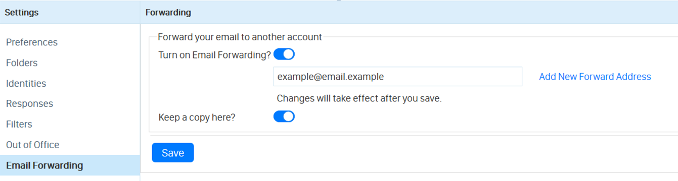 - Turn on email forwarding by pressing the Turn on Email Forwarding? toggle.